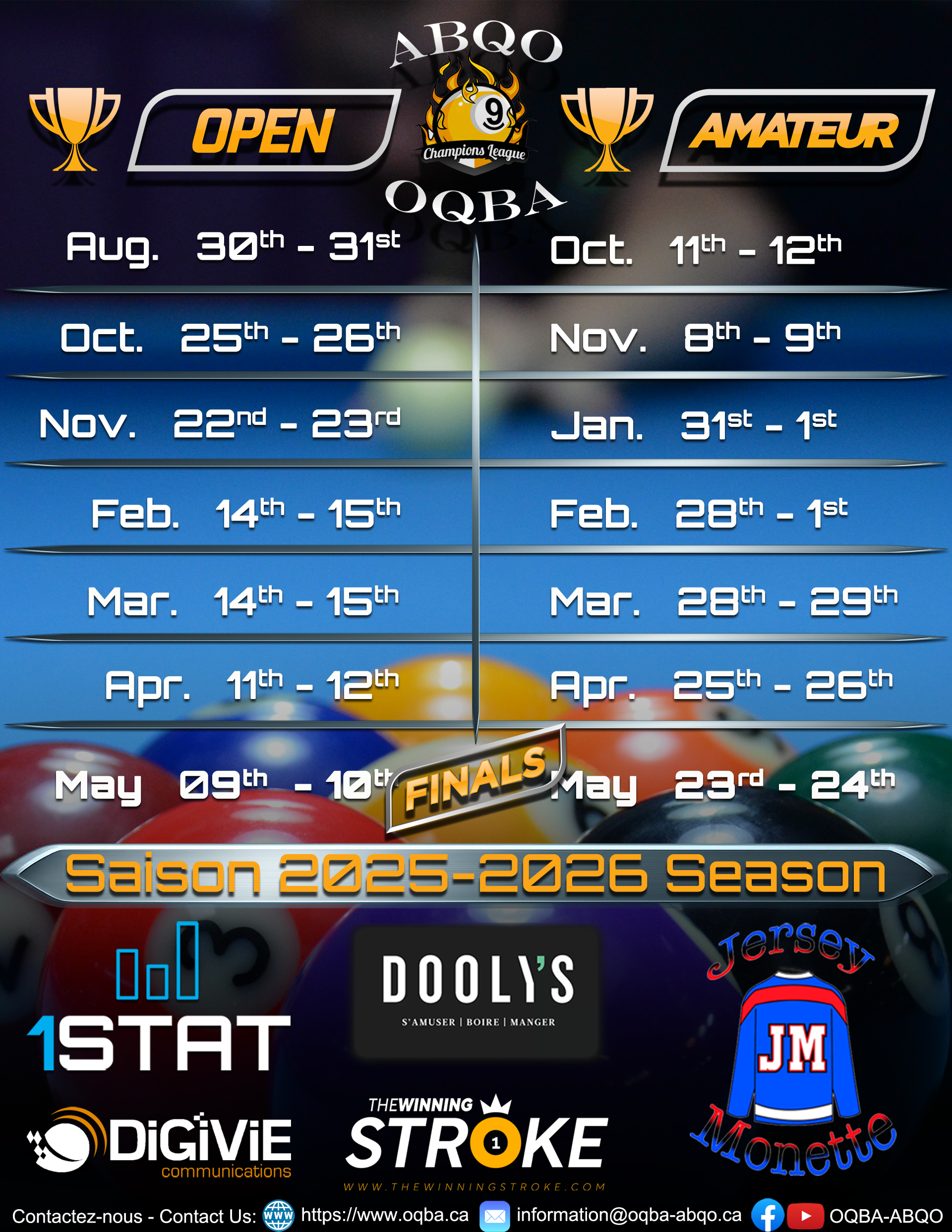 You can view all of our official 2025-2026 tournament dates, with posters and detailed information such as added prize funds, dates, and venues, on this page by clicking on one of the season dates. You can also check the season standings by visiting our