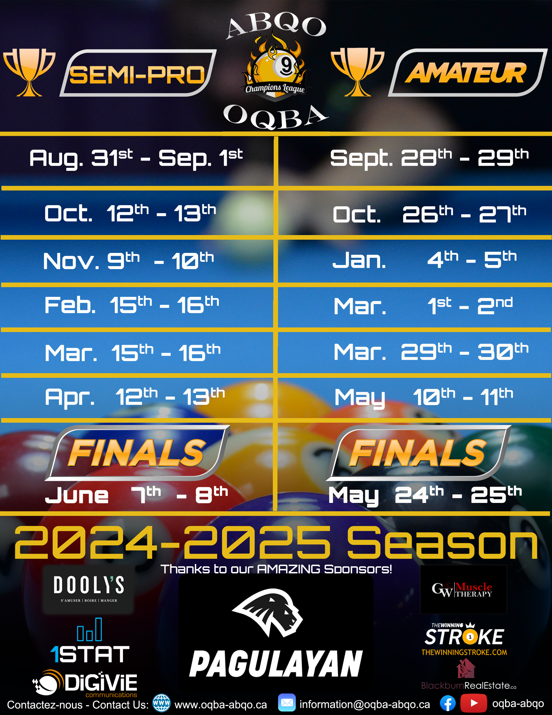 This season's OQBA Champions League is sponsored once again this year by the same generous sponsors! Thank you so much: 30 000$ were invested so far this season!
