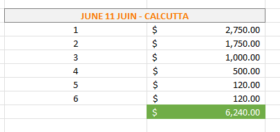 - Calcutta at the start of the tournament!