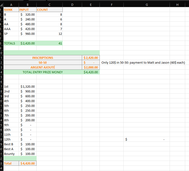 Also note: this will not affect next year’s “saved” amounts as it is coming directly out of our pockets... We know that some of you will not want or care about the extra $, and if that is the case or if we don’t hear back from you before June 11th, we will take the extra money and put it towards the finals: which already has 1 000$ added and possibility for another 1 000$ from sponsors, and the unclaimed amounts!